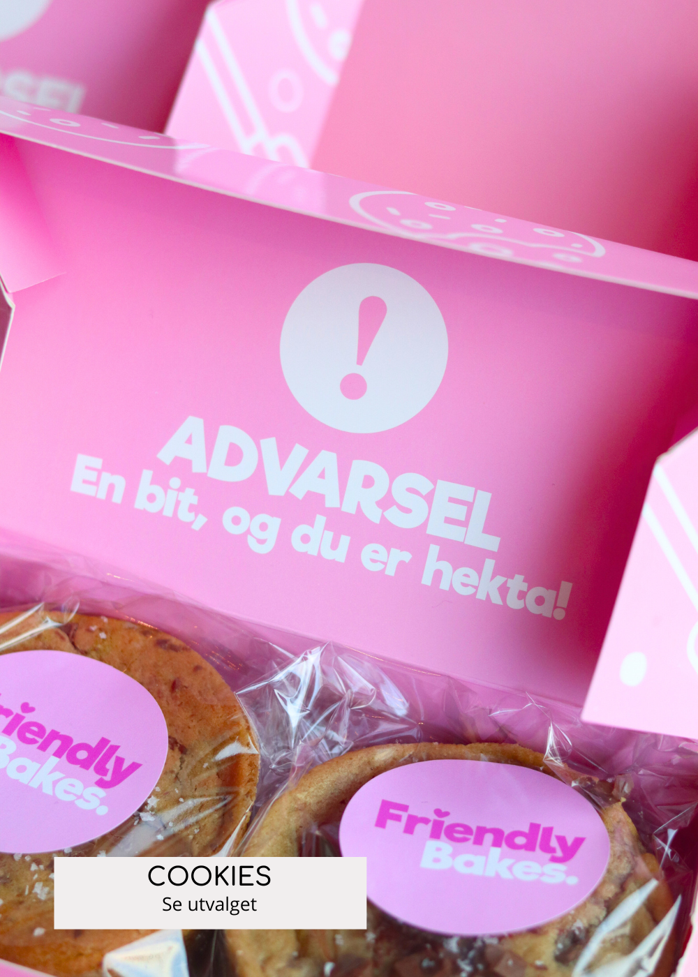 Nattevakt? Søtsug klokka 02:13? Vi dømmer ingen! Skapet vårt har null leggetid og masse digg inni! Finn et lite utvalg av våre produkter + ferske cookies som 1-pk og våre superkule 4-pk esker.